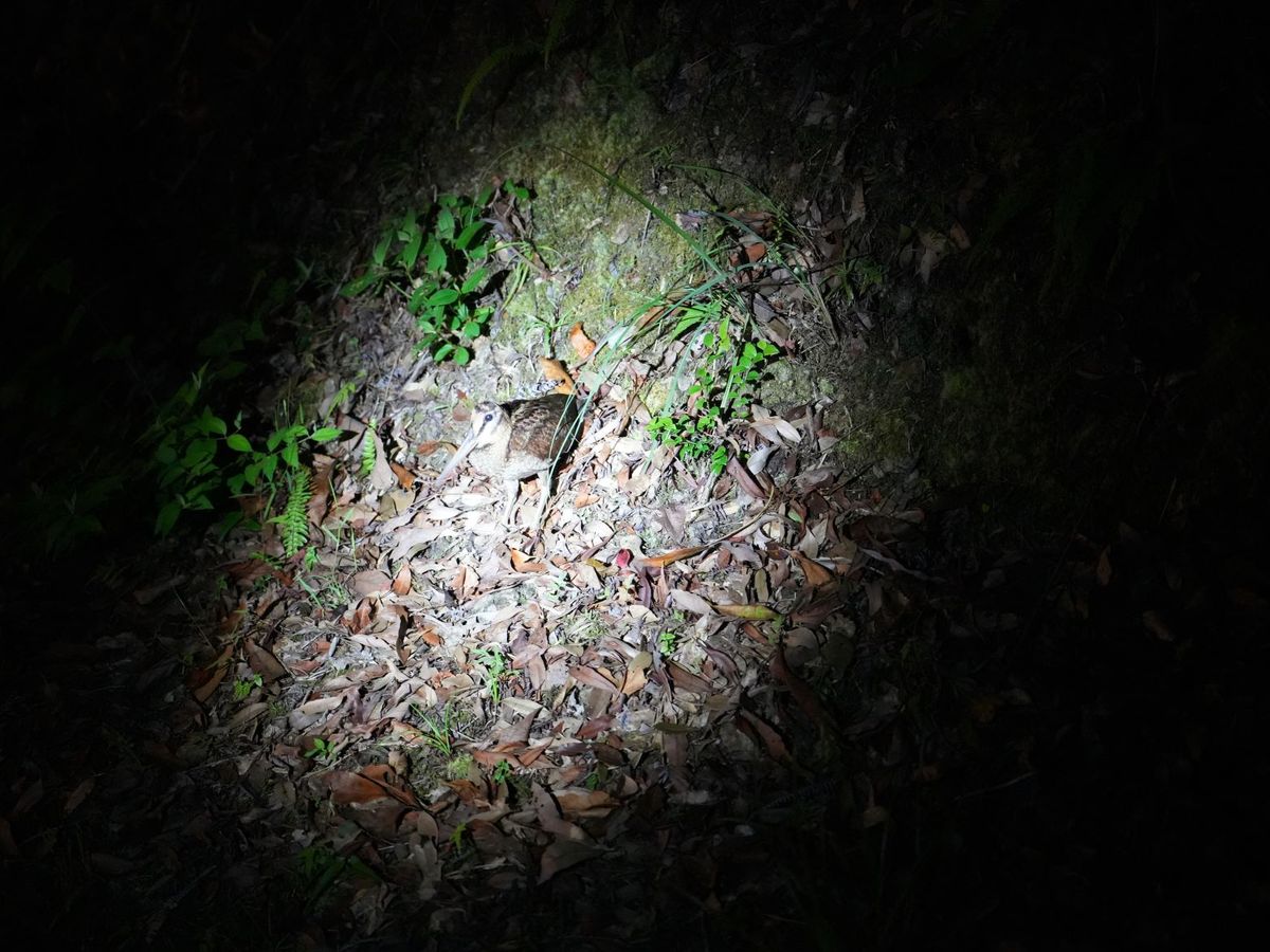 Despite it being a night tour, the weather forecast predicted rain. The day before, we had a detailed discussion about ① the possibility of a weather forecast error, ② what to do in case of light rain, and ③ what to do in case of heavy rain. On the day of the tour, we decided to go ahead despite the "weather that might go from light rain to heavy rain." As a result, it turned out to be a very satisfying tour where we encountered seven birds. Their short ears, short legs, and gestures were incredibly moving and cute.