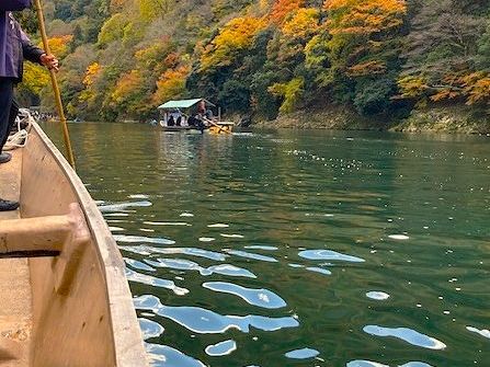 少し寒かったですが、ブランケットを貸して頂き、快適でした。周りに手漕ぎボートがいっぱいでしたが、さすがプロの技、長い棒1本で安全な航行でした。歴史にも触れたお話も聞けて、紅葉🍁も素晴らしく、あっという間の1時間でした。嵐山は、とても混んでいて、駐車場探しに手こずって遅れてしまいましたが、貸切だからということもあり、全員揃うまで待ってくださりました。とても暖かい対応も感謝でした。また、お願いしたいアクティビティです。