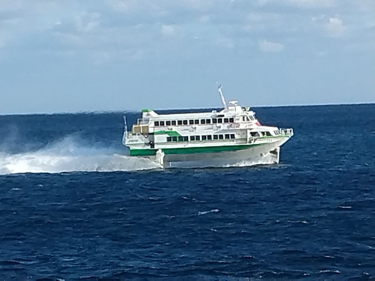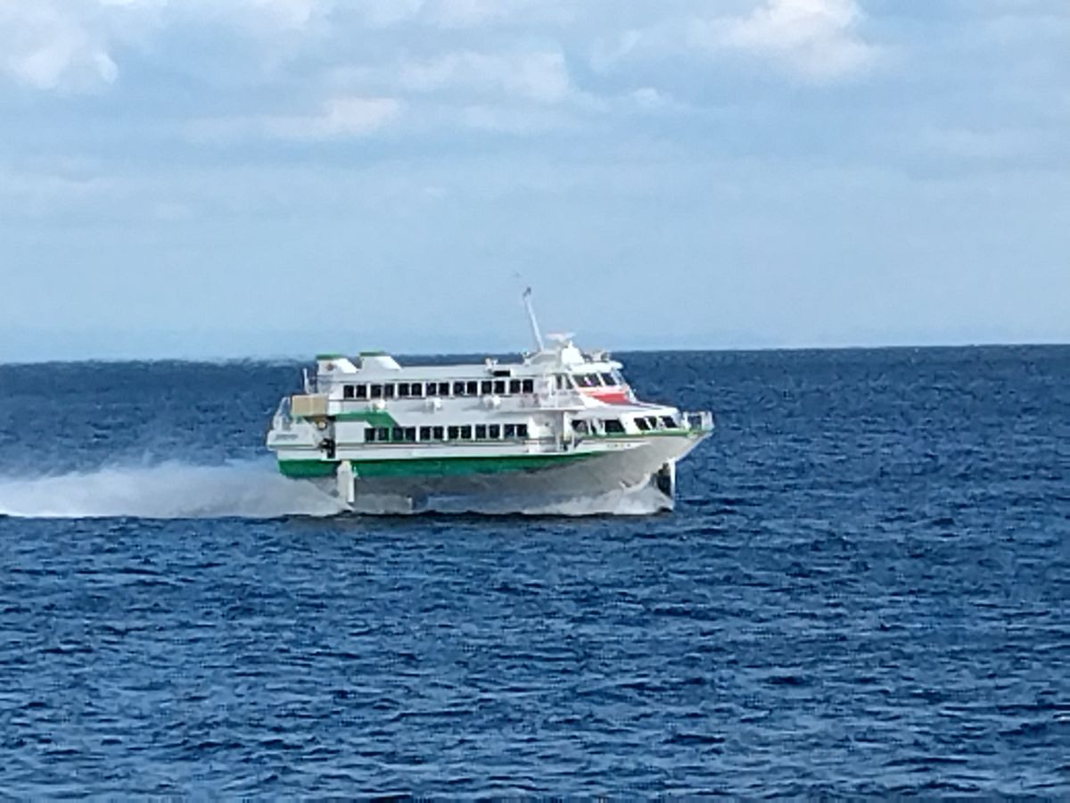 ジェットフォイルのダイヤ次第で、ジェットフォイルに抜かれないこともあるので、良く確認してから乗船してください。