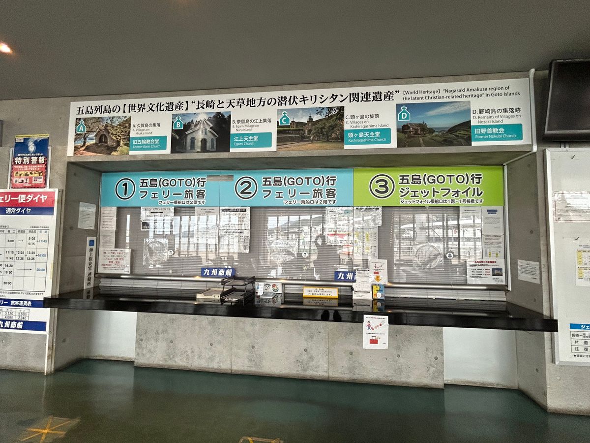 I was worried about the high price, but since I wouldn't be using a car or motorcycle and could only stay one night in Goto, I decided to spend money to buy time and chose this option. I was concerned about the weather, but we set sail safely and were able to head to our next destination feeling relaxed. Moreover, it was more economical than buying tickets directly from Kyushu Ferry! The ticket exchange at the counter was also smooth.