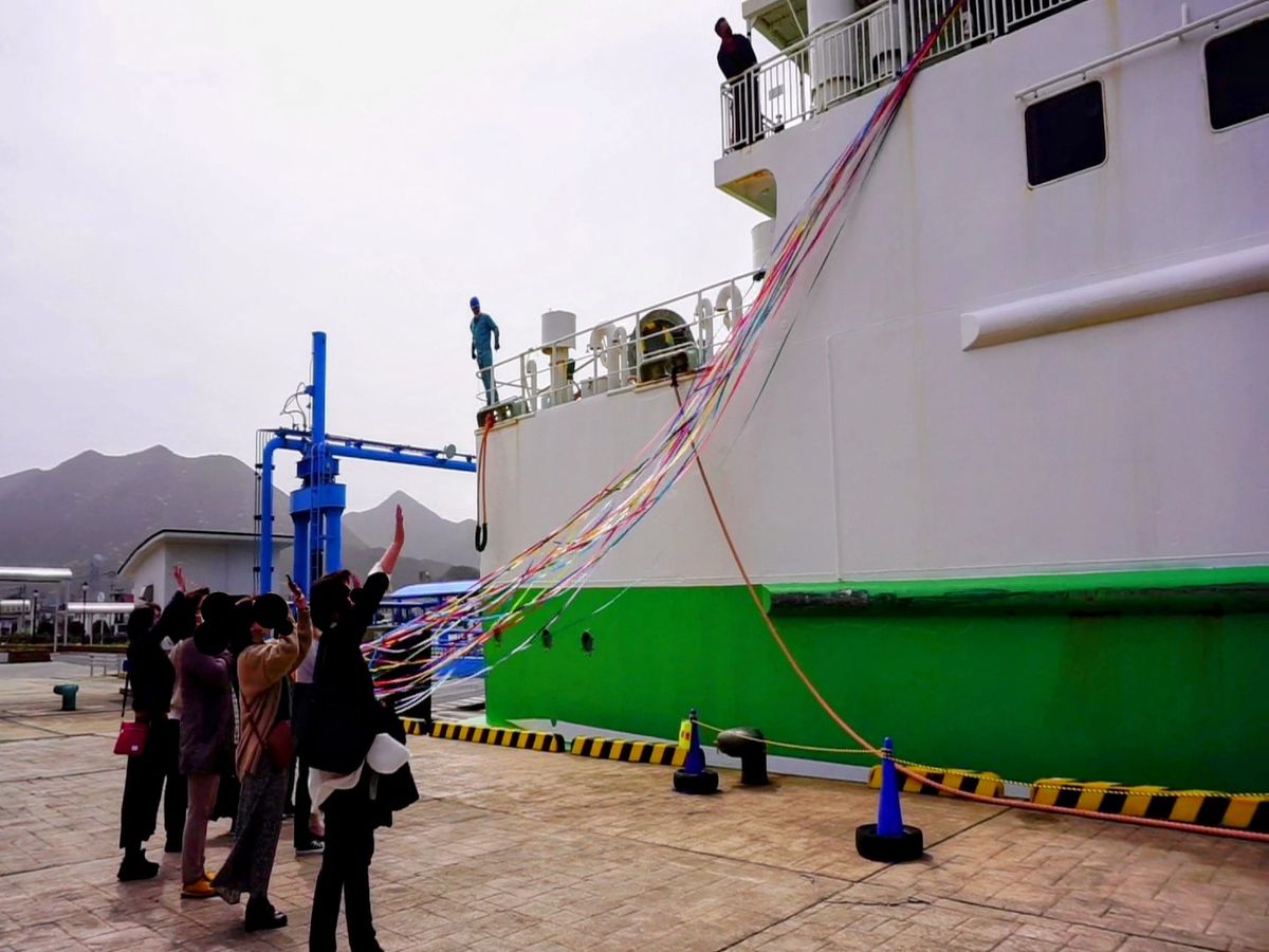 乗船前の有川港で、フェリーを紙テープで見送る「春の風物詩」に遭遇し、五島の方達の暖かさに触れました。