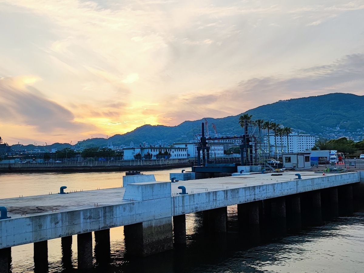 Since I entered the Goto Islands from Nagasaki, I planned to go to Sasebo Port for an overnight stay and then head to the westernmost point, Kanzaki Nose. I took the evening ferry, with the setting sun behind me, and enjoyed the sunset from the deck. When we arrived, the port was beautifully lit up. It was also my first time taking the JR train from Sasebo to Nagasaki Airport via Omura, making it a trip full of local charm.