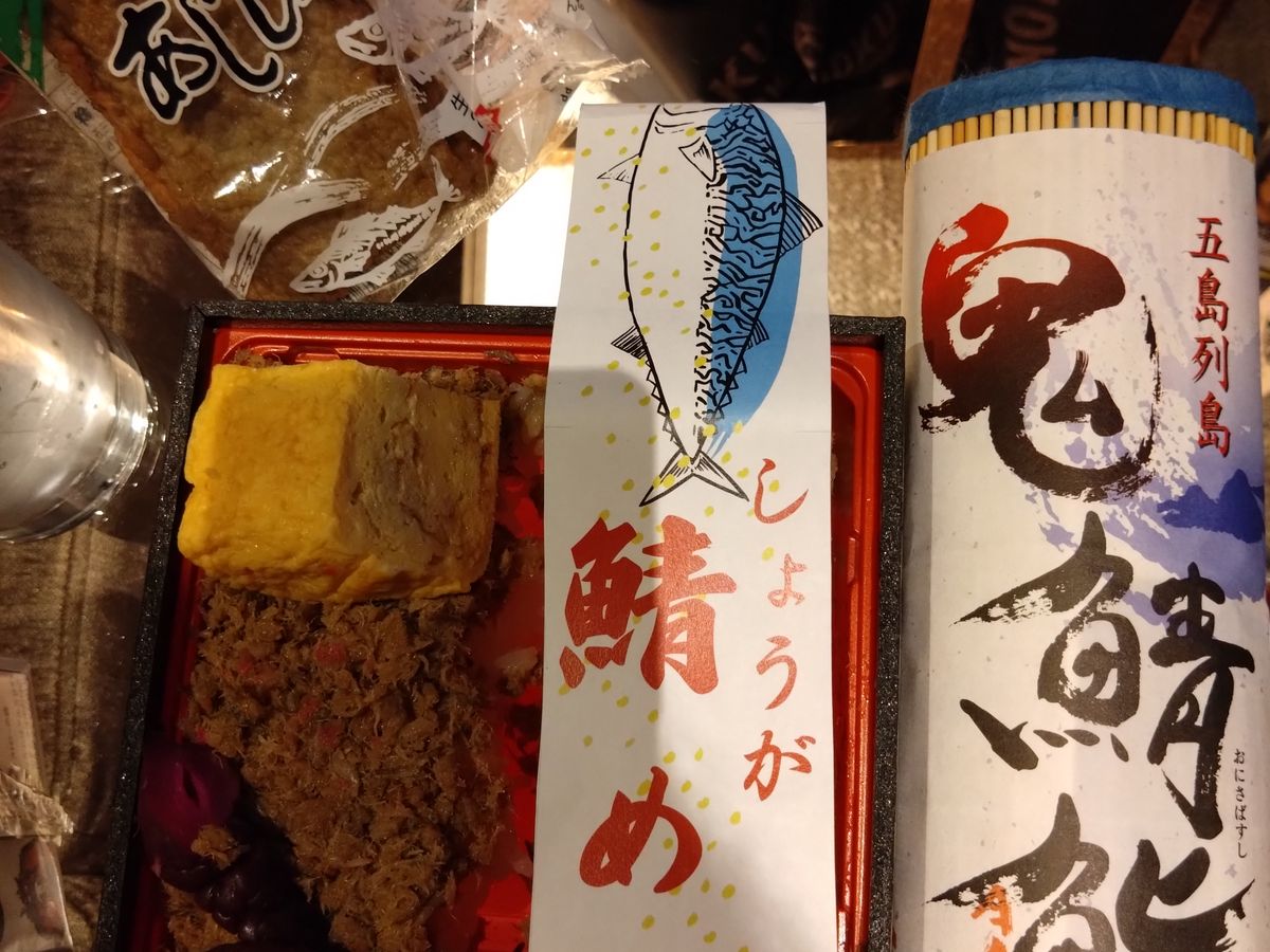 福江島を一日ドライブして帰りもジェットフォイルで長崎に帰ってきました。五島うどん、かんころ餅、福江港ターミナルで買った鬼鯖寿司やお弁当、美味しかったー