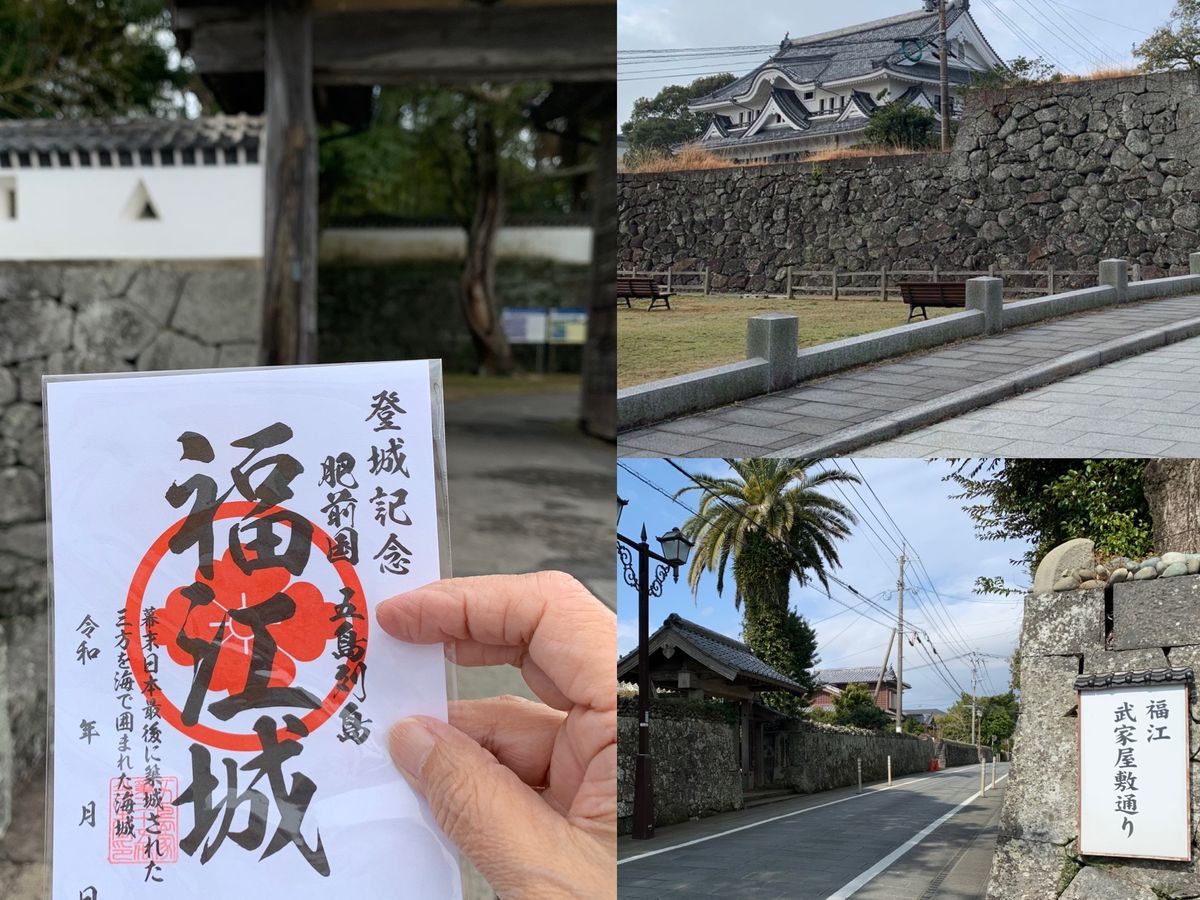五島へは、続日本100名城の福江城跡が目当てで行きました。福江港から徒歩圏内で、武家屋敷跡やジブリの背景を手がけた山本二三さんの美術館もあり、散策するのも興味深く、お魚大きく、美豚ブランドのお肉も、五島うどんもと、美味しいものもたくさんありました。