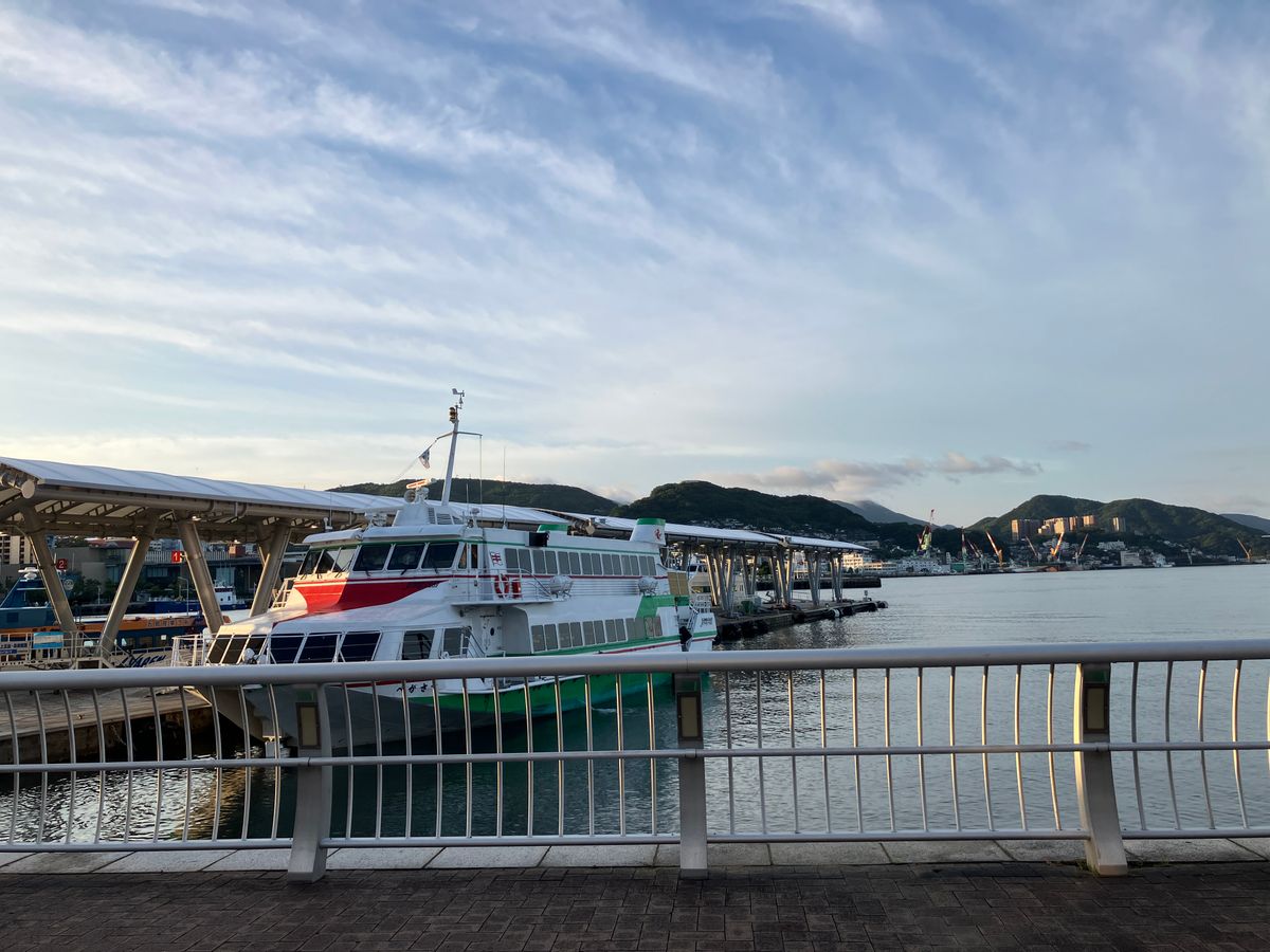 Nagasaki Port is a bit of a walk from public transportation, so if you're not comfortable walking, taking a taxi might be a better option. When I brought my voucher to the Kyushu Ferry counter, they issued my ticket right away. Since I arrived early, I was able to have breakfast at the cafeteria at Nagasaki Port. The jet foil had reserved seating. It was fast and safe, which was great.