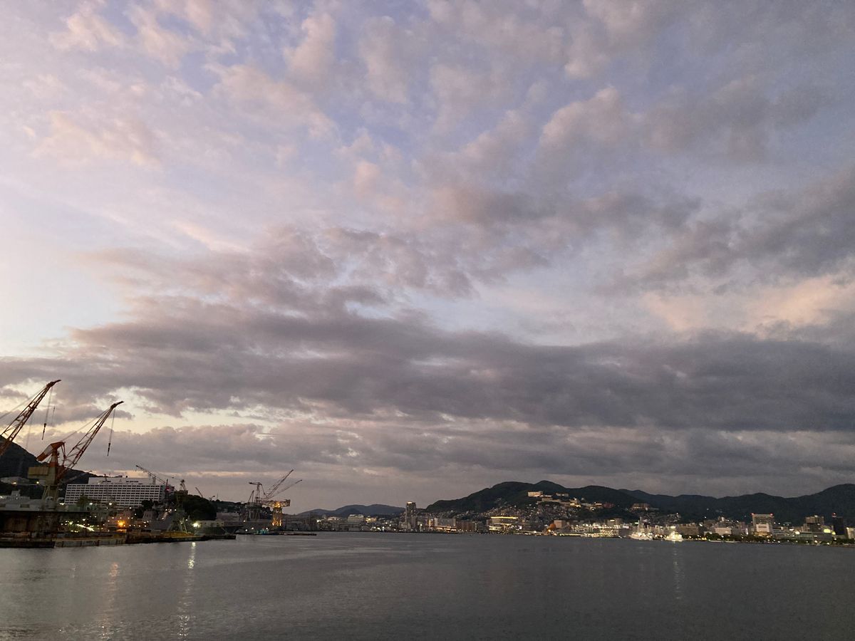 On the way back from Fukue Island to Nagasaki, I took the ferry. On the way there, I rode the jet foil, but on the return trip, I chose the ferry because I wanted to enjoy the sunset sinking into the sea from the deck. I was able to see a wonderful sunset as I had hoped, and it was truly moving.