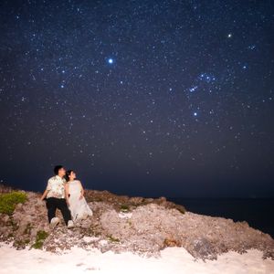 撮影当日は、人の少ない場所へ案内していただき、落ち着いた雰囲気の中でとても素敵な写真を撮っていただけました。私たちの前に撮影されている方がいた際には、寝転べる椅子に座らせていただき、星空鑑賞までさせてもらえて感動しました。こんなに綺麗な星を見たのは初めてです。