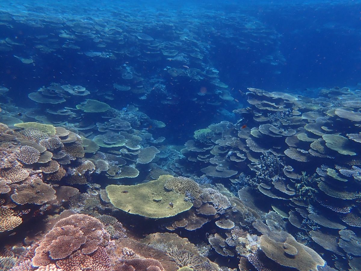 サンゴ礁も素晴らしくテーブルサンゴや赤、青の珍しいサンゴも見る事が出来ました。