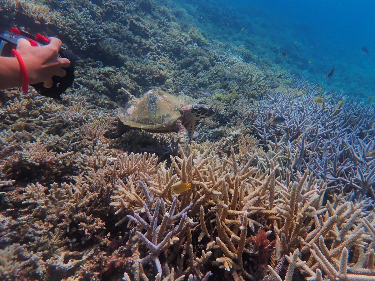 The coral reef spread out all around, and there were plenty of tropical fish. On top of that, I was lucky enough to encounter turtles twice. The color of the sea was beautiful as well. I want to come back again.