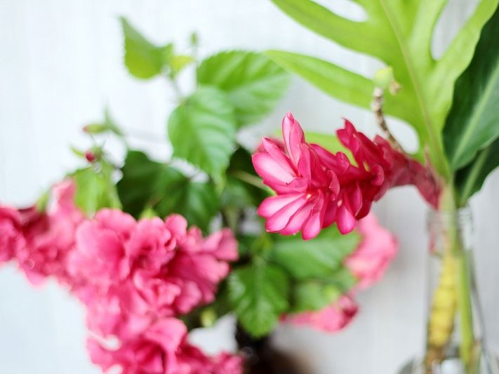 南国の花々を浮かべたフットバスでリラックス
