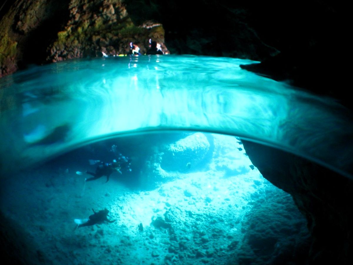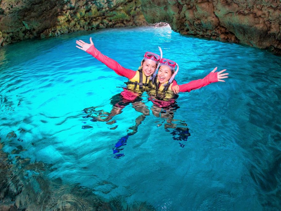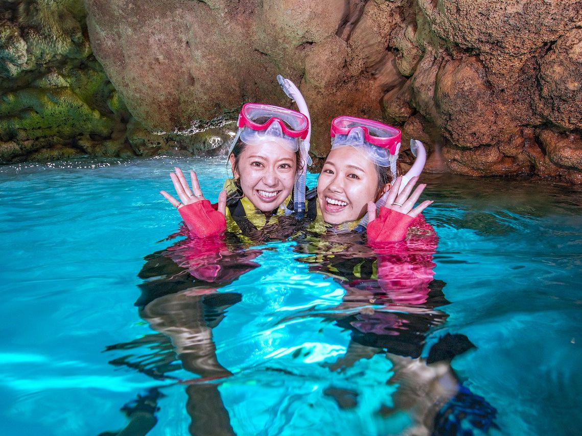 Snorkel plan at Blue Cave, a popular spot in Okinawa. This plan lets you experience the mystical blue scenery created by a unique combination of natural factors. During the fish-feeding experience, you can observe beautiful tropical fish up close!