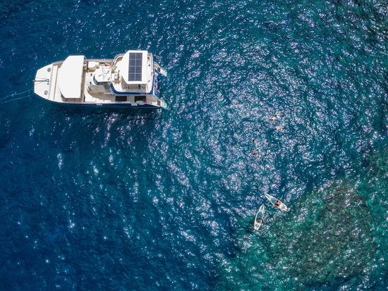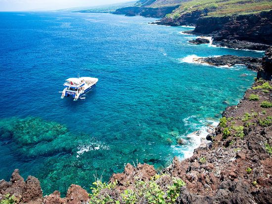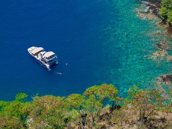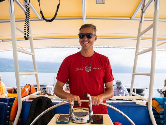 Skip the crowds and discover remote secluded locations on a 5-hour Kona snorkel tour aboard the Hula Kai. With up to 3 hours of snorkel, explore two pristine diving destinations. Includes paddleboards, delicious plant-based breakfast and lunch.