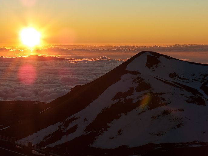 Experience Hawaii's most popular attraction! Visit the summit of Mauna Kea to witness one of the most breathtaking sunsets in Hawaii. Next, travel to Mauna Kea Visitor Center and enjoy a guided stargazing tour with telescopes. Includes parka & gloves