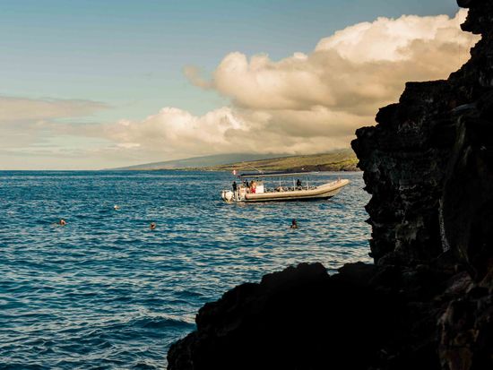 Dive into the ocean rafting adventure of a lifetime from Kailua-Kona, and enjoy a thrilling guided Big Island snorkeling tour to two of Hawaii's best snorkel spots. Then relax with a tasty picnic lunch as you take in stunning views of Kona coastline.