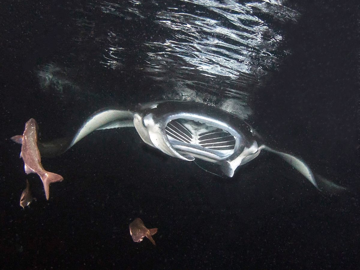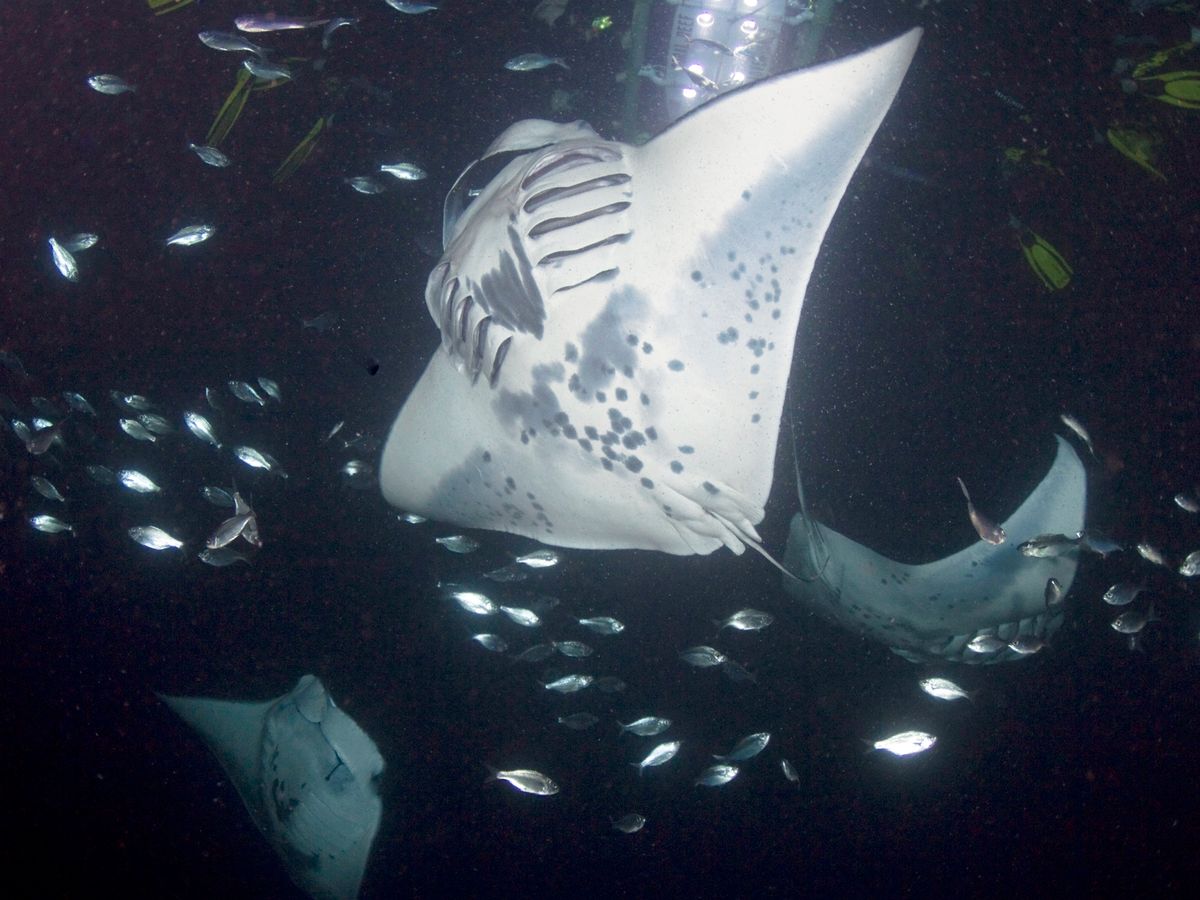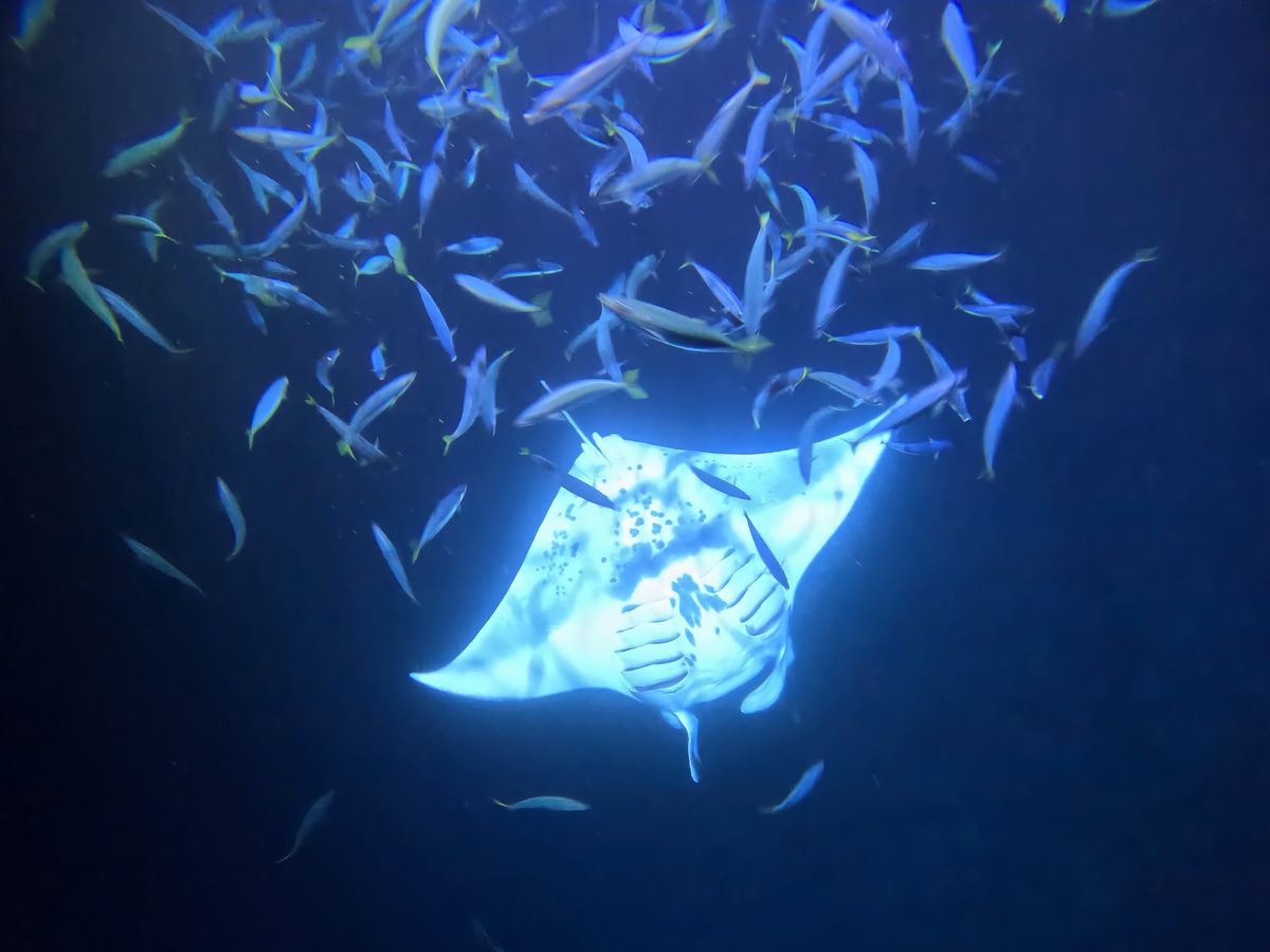 Join a guided night snorkel off the Kona Coast and swim with massive and harmless manta rays drawn in by LED light boards. This 2.5-hour Big Island tour includes snorkel gear, wetsuits, hot and cold drinks, snacks, and free GoPro photos and video.