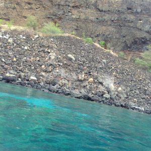 After about 1 hour and 30 minutes, we arrived at Kealakekua Bay for snorkeling. The water was very clear, and we could see coral reefs and beautiful fish.