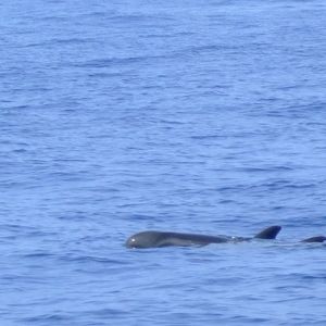ボンボン揺られながら、沖にでると、早速イルカの群れに遭遇。2番目に大きい種類のイルカだそうで、小さいくじらかと思いました。