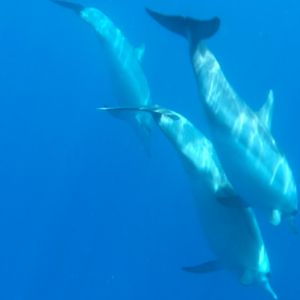 本当にイルカが右に左に、前に後ろに、下から上にと、ゆっくり私達のそばを泳いで行きます。イルカだらけの真ん中に自分が居る感じです!