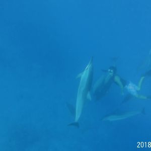 触っちゃいけないと言われてましたが、イルカの方からぶつかりそうなくらい近くまで寄ってきて、横に並んで泳いだり、群れの後ろについて泳いだり、突然イルカが私の下から現れたりして、イルカに遊んでもらえて本当に楽しかったです(*^^*)