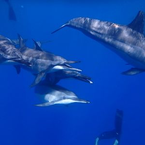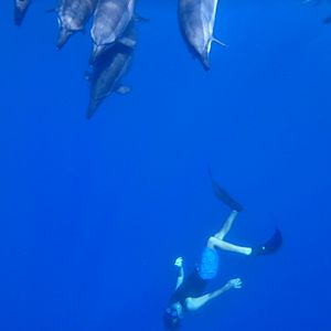 I encountered a lot of dolphins! The guide mentioned that it's rare to meet so many dolphins, so I was glad to dive at such a great time. It was my first time snorkeling, but I was able to swim without any issues. I'm grateful for this wonderful experience and the great memories made in Hawaii.