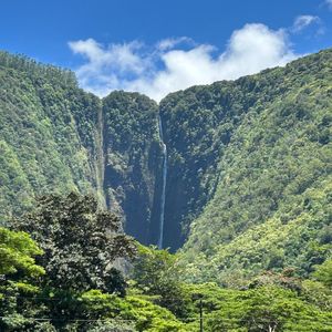 Tour guide was a local. This was once in a lifetime experience to go down into the valley and see the long cascading waterfall. We meandered through trails & crossed 7 streams and passed by taro fields.