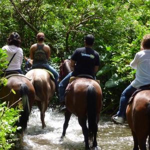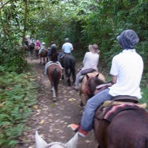 A van takes you down to the valley floor where you are introduced to your horses. The ride takes you thru beautiful vegetation (mangos, avacados, bananas, taro and amazing flowers). You cross thru streams and see waterfalls streaming down into the valley. The riding itself is not very exciting. The horses walk at a leisurely pace. However the views are so worth it!