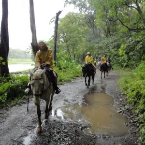 Even with quite a bit of rain, the ride doesn't get canceled. They lend you raincoats, but some raincoats only cover the upper body, so my pants got completely soaked. The color from the saddle transferred onto my pants.