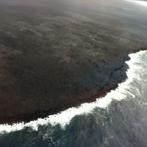 ただ、目的の火山があまりアクティブでなく、のんびり溶岩が流れている様子が何カ所か見られるのみでした。それも上空からだと動いているかどうかは実感できません。今(今日?)溶岩はスリーピーとのこと。溶岩が噴出していたり、海には落ちていたりする様子はありませんでした。熱い溶岩がない訳ではないのですが午前中のフライトなので、溶岩がところどころ赤くなっていることが分かる程度で、夜だったら見え方は多少違うのかもしれません。2ヶ月くらい前に予約したので、火山の状態がどうかは運によるところが大きいのでしょう。この状態ならハイキングと星空ツアーの方が、より近くで流れる溶岩を見られてよいかと思いました。火山の状態をチェックしながらどのツアーにするか考えるとよいかもしれません。
