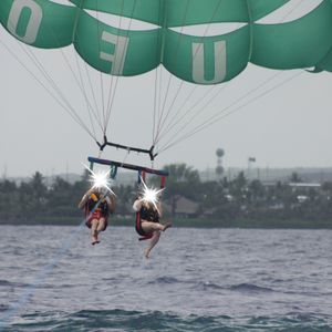 Neither my husband nor I had been parasailing before, but opted for the 1,200ft option because we wanted to get the most from the experience. It was so much fun! I though I'd be a little afraid, but after watching the other folks ahead of us (We were one of two parties on the boat), it didn't seem scary at all. Once we got up the view took our breath away so there was no room for fear. We dipped our feet in the water at the end, and wished the ride could've have been longer than the 15-20 minutes. The crew was great and very patient with my seasickness at the end.