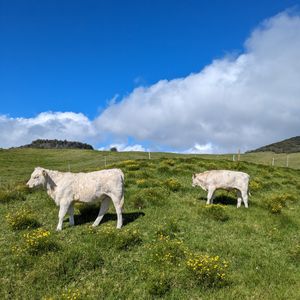 Riding the horse through the grasslands, running at times, and climbing hills was thrilling and very enjoyable. While walking beside the ranch and watching the cows and horses, I even spotted wild pigs in the distance. The weather was nice, and the scenery was beautiful. At the end, I was able to take pictures with the sea and mountains in the background, which made for great memories. The contrast between the sky and the grasslands was stunning (just be careful of sunburn!).