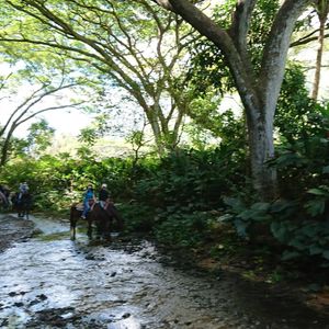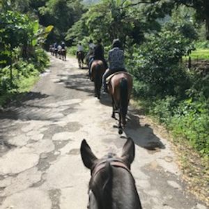 Once in lifetime trip with my parents (both in 70s but fit). We went to the ranch (a little hard to find), drove down with the guides in a 4 wheeler......quite a drive. A very scenic but bumpy 30 minute ride to stables, another 30 minutes to get the whole party mounted up on horseback, and then a leisurely 2+ hours trek through magical lush green landscape, splashing through streams and seeing wild horses grazing, surrounded by towering cliffs and occasional waterfalls.