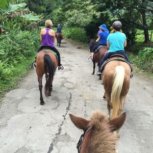 友人たちとハワイ島でゆっくり過ごしました。ワイピオ渓谷での乗馬はわくわくでした。お馬さんたちがとても賢くて躾が行き届いていました。案内のように付いてくるワンちゃんたちがとっても可愛くて最高でした。ガイドさんたちもとても親切で楽しい方々でした。素敵な思い出になりました。今度もまた会いに行きたいと思います。