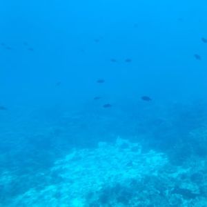 色とりどりの珊瑚〜とまではいきませんでしたが、予想より水の透明度が高く、そこそこ魚も見られました。イルカも遭遇しましたよ!ヒレしか見えませんでしたが。