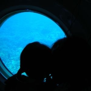耳抜きの苦手な私は、体験ダイビングでは苦しさが感動を若干上回り、以来、海の底とは遠ざかっていました。そして今回思いついたのが潜水艦ツアーへの参加。これは期待以上でした。潜水艦はもちろんどんなに潜っても苦しくなることなく、じっくり美しく幻想的な別世界を楽しむことができました。30分の潜水時間だったようですが、夢中になってしまいあっという間に過ぎてしまいました。きらきら光る珊瑚、小さな魚たち、なにやら不明な海底動物、そして、なんとイルカのカップルにも遭遇しました。ガイドさんによると、これは珍しくラッキーだったようです。