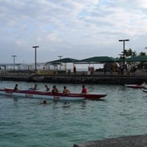 I decided to participate in this luau show because it is conveniently held in the center of Kailua-Kona. Check-in is at 5:00 PM, and there is also an ABC Store in the center of Kona, which is not uncommon in Oahu, so I included some shopping as well. I arrived early and watched what seemed to be a local student canoe team's practice before heading to the venue.