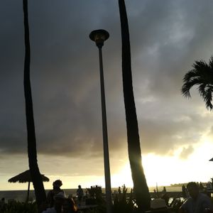 This was our first trip to Hawaii with my husband and his parents. We made a reservation here to experience the Hawaiian atmosphere on our first day. It's a buffet style, and it gets a bit crowded at first, but it's manageable after a short wait. The ahi poke was delicious. There are two drink stations: one at the back of the buffet line and another to the right of the stage. If you go further back from the drink counter on the right side of the stage around sunset, you can see a wonderful sunset. (There are also ashtrays in that area.) Overall, I thought it was a bit pricey, so I gave it three stars. I felt it would cost around 10,000 yen based on my experience in Japan.