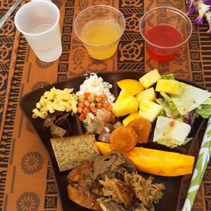 料理はブッフェスタイル、ドリンクは飲み放題でした。料理はハワイらしい味です。