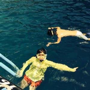 Before getting on the boat, I was a bit worried about whether my 4-year-old would be safe and not fall off, but he was able to sit on a platform in the middle of the boat, resting his feet on my wife's legs, so there was no worry of him being thrown off. (He did bounce around a bit when the boat hit waves, but it seemed like he enjoyed that!) The captain, along with a female staff member and her child, was very attentive to our son throughout the trip. During snorkeling, my wife and I initially took turns looking after our son on the boat while the other snorkeled, but at one point, the captain said, "I'll watch the child, so you two go ahead," which allowed my wife and me to enjoy snorkeling together, and we were very grateful for that. They also provided a child-sized float (with a transparent center so he could see underwater), but our son didn't want to go into the water and didn't use it. I think even those with small children can participate without too much worry.