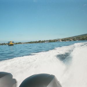 ハワイ島のコナ側は雨も少なく、いつ行っても爽快でしょう。このスピードとスリルはとても地上では味わえません。ボートと一体になって飛んで行くようです。