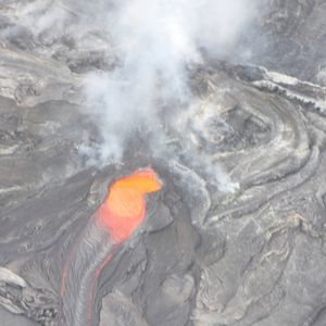 Currently, the activity of Kilauea seems to be at a lull, and the orange crater is not easily visible. However, the pilot (an American on this day) skillfully maneuvered the helicopter with right and left turns, ensuring that both sides had a good view. In the attached photo, you can see the orange crater when enlarged.