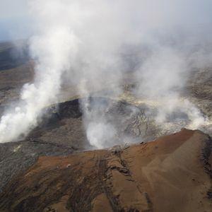 実際火口を上から見て、ボコボコ湧き出る溶岩が見られました。