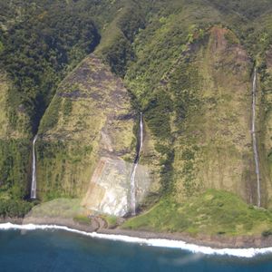 In Waipi'o Valley, you can see multiple waterfalls with a significant drop against a backdrop of green forests, which were even more impressive than the crater.