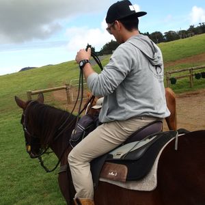 I actually wanted to go horseback riding in Waipi'o Valley, but I couldn't make a reservation, so I gave up. I was able to make a reservation for horseback riding at the ranch, so I participated here instead. They didn't speak any Japanese at all, but they explained things in simple English with smiles, so I hardly had any trouble. They provide Western boots, socks, parkas, jackets, and bags, so you can go hands-free without any issues. I left my valuables with them, but I took a drink, camera, and phone in my bag. Sneakers would be fine, but I think it's better to borrow boots. I had my own socks, so I wore those. Did we ride for about 1.5 hours? We galloped and trotted around the vast ranch grounds. Since my husband was almost a beginner, I thought we would just walk, but he looked at the situation and asked if we wanted to try running, and we did a few times. The horses do gauge people to some extent, but they are calm and listen well, so I wasn't particularly worried. They smiled and said, "Come back again next year!" Thank you very much! I want to come again!