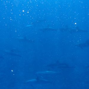 We encountered dolphins right after we set sail. Although we couldn't keep up with the dolphins due to the high waves, there were so many of them that we were able to swim alongside them.