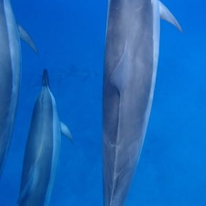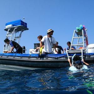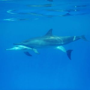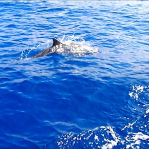 海に出てすぐにイルカを見つけることが出来てびっくりしました。海に入るとイルカの鳴き声が聞こえ、自分の近くを泳いで行ったり、群れで泳いでいる姿を間近で見れたり、とっても感動しました。帰りも船のすぐ横を親子のイルカが一緒に泳いでいたりと本当にすぐ近くに野生のイルカを見ることが出来ます。