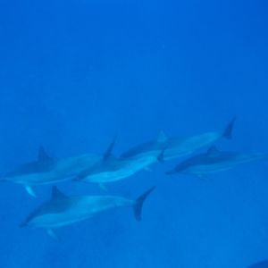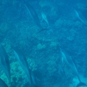 この日は運が良く、4回のエントリーすべて、数えきれないほどのイルカさんに会うことができました!!夫はイルカの群れと並んで泳いで満足そうでした。私は動かずにいたらイルカの群れがまっすぐ向かってきて、イルカと顔があたりそうでした。キューキューというイルカの鳴き声も聞くことができました!!子供イルカもいて、とても可愛らしかったです。