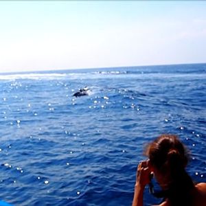 Of course, we got to see dolphins, and we even encountered a manta ray, which was incredibly moving. They made sure we could meet dolphins multiple times by getting the boat ahead of them, and we could even hear the dolphins' sounds and saw a mother and baby dolphin.
