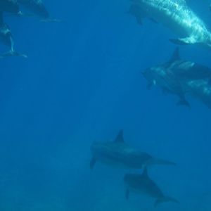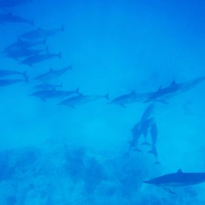 オアフ島では何回か野生のイルカツアーに参加しました。今回はハワイ島でのイルカツアーは凄いらしいと噂を聞いて予約しました。イルカを追い求めてボートを海上に縦横無尽に走らせ、凄く近くまでイルカ達が来てくれる場所まで連れて行ってくれました。親子イルカや遊んでいるイルカ達を近くで見ることができて、大感激だったのですが、ツアースタッフの方々はいつもより少なくて残念と言ってました。じゃあ、いつもの時に参加できたら本当に群れと泳げるのか!!!と。次回のハワイ島では必ず予約しようと決めました。参加している方の中で防水100%のデジカメで撮られた水中のイルカ達の写真がとてもきれいだったので、次回は防水デジカメ持参で参加したいです。このツアーに参加した後に、オアフ島のリクリエーション的なイルカルアーは楽しいけれども、もういいかな、、、と個人的には思いました。