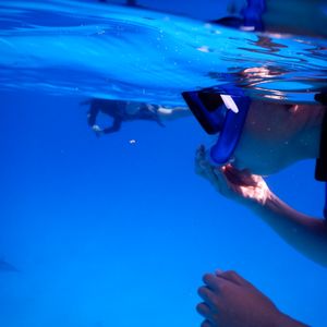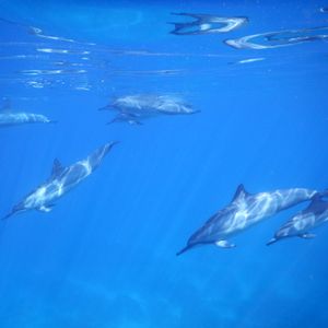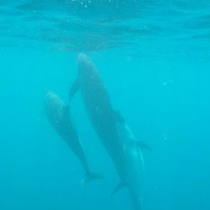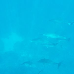 During the first time in the water, I wasn't quite used to the sea yet, so I was a bit slow to put my face in the water, and I barely managed to see the dolphins swimming far away. The second time, as soon as I got in the water and put my face down, I was able to see a mother and baby dolphin swimming slowly right below me. I could also hear their cute squeaking sounds. After that, I got more comfortable in the water and was able to enjoy the sunlight filtering through the water and the sight of many dolphins swimming around me.
