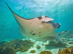 Floating in the water with the lights attracting plankton which guides the the manta rays to glide gracefully just beneath us, it is truly magical.